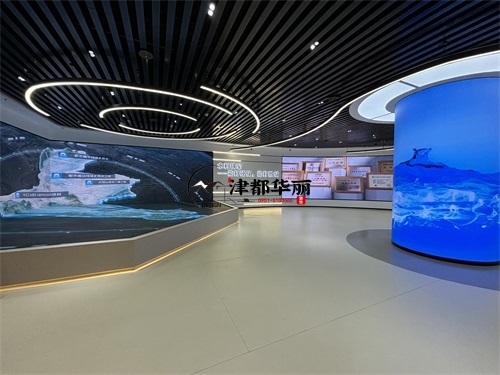 今天分享的是同心水利水电办公楼装修设计实景照片,整体而言,该办公楼空间是银川装修公司津都华丽对“专业行业办公展厅”的优质落地:以极简工业风为基底,用科技载体承载水利水电的专业叙事,在功能实用性与主题表达力之间找到平衡,既展现了行业的硬核科技感,又传递了水利工程的人文价值。材质与细节上,银川装修公司津都华丽的“实用美学”理念贯穿其中:展墙采用模块化金属嵌板,既符合水利展厅的科技质感,又满足内容更新的弹性需求;灯光系统以间接照明为主,环形灯带与嵌入式射灯的组合,既保证空间明亮度,又通过光影层次营造科技氛围;而流线型展陈台的圆角设计、地面的隐形收边工艺,则体现了津都华丽在工业风设计中“细节柔化”的巧思。
