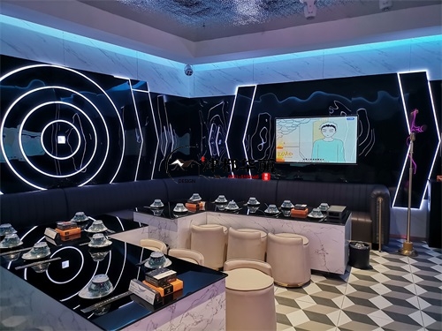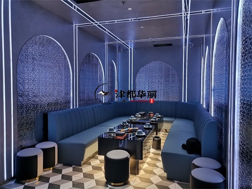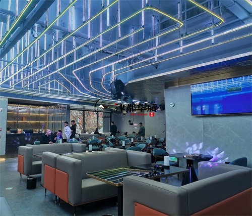 今天分享的是同心鼎龙餐厅设计装修项目实景鉴赏,该项目以“未来感与时尚感深度融合”为设计核心,致力于打造一个兼具餐饮与娱乐功能的沉浸式空间。在视觉设计上,空间大量运用霓虹光源与几何元素,例如墙面环绕的环形灯带、立体几何装饰结构,并以高对比度的黑白主色调为基底,成功营造出极具赛博朋克风格的前卫氛围,精准匹配年轻消费群体对潮流社交空间的需求。功能布局上,该餐厅巧妙融合KTV包厢的休闲属性与传统餐厅的用餐功能,采用卡座与餐桌一体化的设计方案,在保障用餐便捷性的同时,充分满足消费者的社交娱乐需求。银川装修公司津都华丽团队在本次项目中,深度践行潮流沉浸式餐饮空间的设计理念。